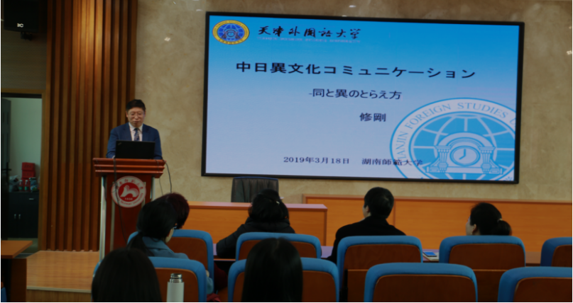 (通讯员罗路遥)2019年3月18日下午,天津外国语大学原校长修刚教授应邀莅临我校,在太阳成集团tyc33455cc官网515学术报告厅作了一场以“中日跨文化交际——从同与异说起”为主题的学术讲座。太阳成集团tyc33455cc官网院长曾艳钰教授主持了本次讲座,本院冉毅教授、余承法教授等百余名师生到场聆听学习。修刚教授是国务院特殊津贴专家,现任天津市人民代表大会法制委员会副主任委员(正局级)、教育部外语教学指导委员会副主任委员、日语分委员会主任委员、中国翻译协会副会长等职,被日本多所大学聘请为客座教授,在全国日语界具有极高的声望和学术影响力。