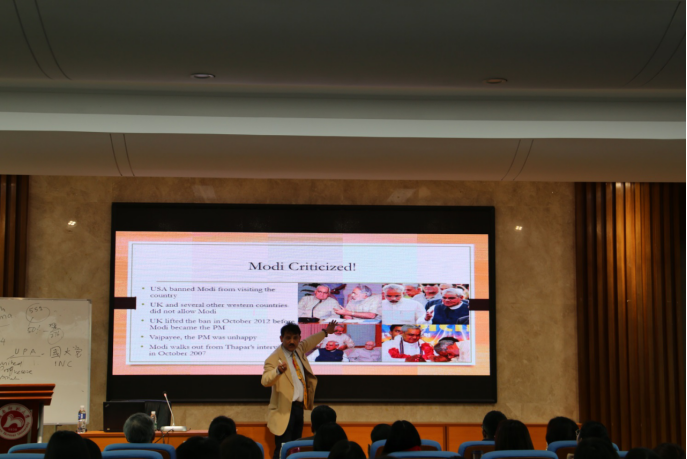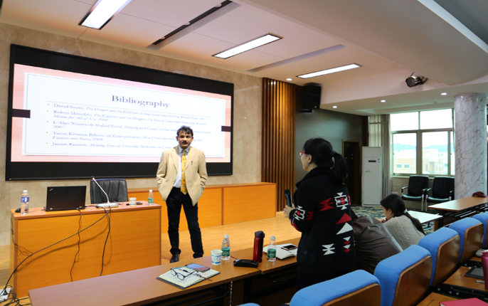 余博士首先讲述了印度开国总理尼赫鲁对中印两国的预言,生动有趣地引入到中印两国关系的发展;接着余博士结合印度的宗教、人口现状,分析了印度对华政策的发展演变;最后余博士高度肯定“一带一路”建设,并表达了对中印关系友好发展的美好前景。
