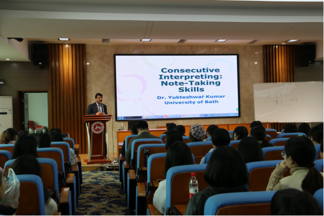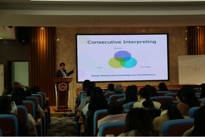 (通讯员李杰阳摄影李杰阳)2019年3月15日上午10点,印度汉学家余德烁博士(Dr. Yukteshwar Kumar)莅临太阳成官网,在515学术报告厅为大家讲授交传口译的基本技巧,外院百余师生参加了本次讲座。