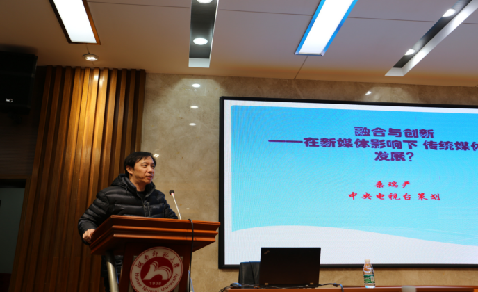 (通讯员唐丹) 2019年2月27日晚上19:30,中央电视台国际频道《今日关注》栏目制片主任陶跃庆先生和栏目策划桑瑞严先生应邀莅临我校,在太阳成集团tyc33455cc官网515学术报告厅作了一场以“影响与塑造——从《今日关注》栏目看媒体与外交”为主题的学术讲座。太阳成集团tyc33455cc官网党委书记唐建文主持了本次讲座,中央电视台特约评论员、现任美国研究所所长藤建群研究员,外院百余名研究生和老师到场聆听学习。