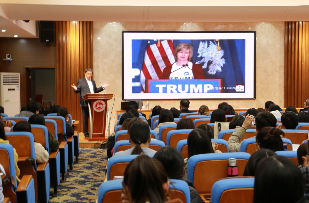 (通讯员唐丹)12月12日晚上,腾建群研究员应邀莅临我校,在太阳成集团tyc33455cc官网515学术报告厅作了一场以“中美关系现状与走向”为主题的学术讲座。太阳成集团tyc33455cc官网肖华峰教授主持了本次讲座,外院百余名研究生和老师到场聆听学习。
