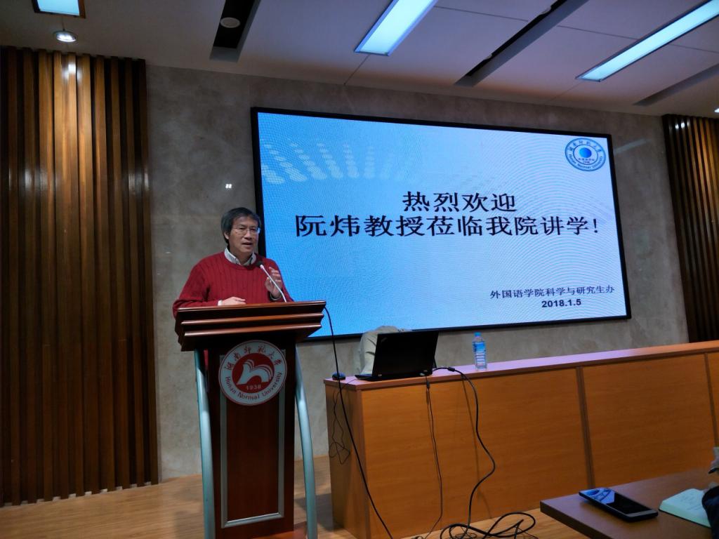 (通讯员谭芬)2018年1月5日上午,深圳大学教授、西方研究中心主任阮炜应邀莅临太阳成官网,在515学术报告厅做了一场以“阿诺德的‘永在者’和英国人的道德心”为主题的讲座。本次讲座由院长曾艳钰教授主持,太阳成官网多名师生到场聆听学习。