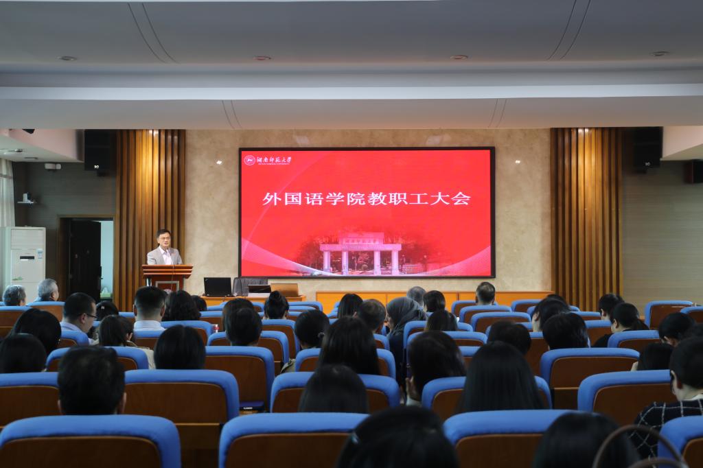 唐建文首先通报了学院接受教育部本科英语师范专业认证的情况,并代表院党委和行政对为认证工作付出辛勤工作的师生员工表示衷心感谢。