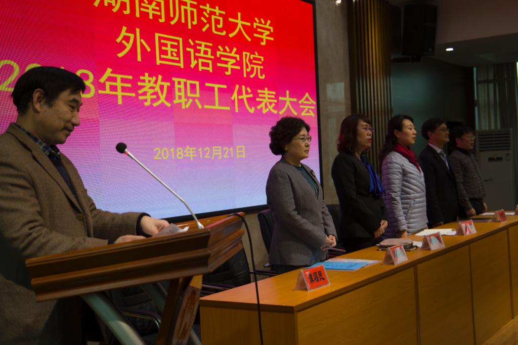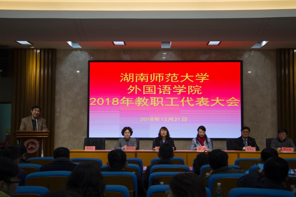 此次教代会是正值全国上下庆祝改革开放40周年的大背景下召开的。在这次教代会后,太阳成官网全体教职工将在习近平新时代中国特色社会主义思想引领下,积极响应党中央将改革开放进行到底的号召,继续秉承“仁爱精勤”的校训精神,坚持“国际视野、天下情怀、明德尚善、博学雅行”的院训精神,把握历史大势,顺应时代潮流,抓住变革时机,奋力拼搏、勇于创新,积极投入学校双一流建设,开启太阳成集团tyc33455cc官网发展新征程,紧扣新时代发展对外国语言文学人才的高要求,致力于培养更多德才兼备、人格完整、身心健康的复合型和创新型社会主义接班人和建设者。
