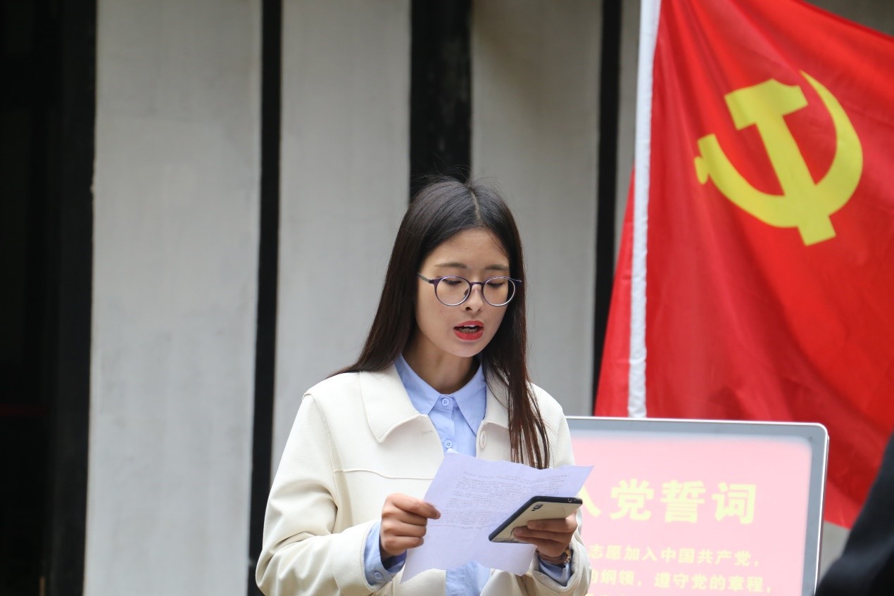 学生代表曾良发言。她结合“和教授一起看天下”主题思政实践活动的主题——“学党史强信念 践初心创一流”发表自己的感想。她表示,作为一名外语专业的大学生党员,更应当学好党史,充分发挥自己的语言优势,传播中华文化、讲好中国故事;同时将坚定理想信念,全心全意为人民服务,争做有担当、有责任心的新时代青年。