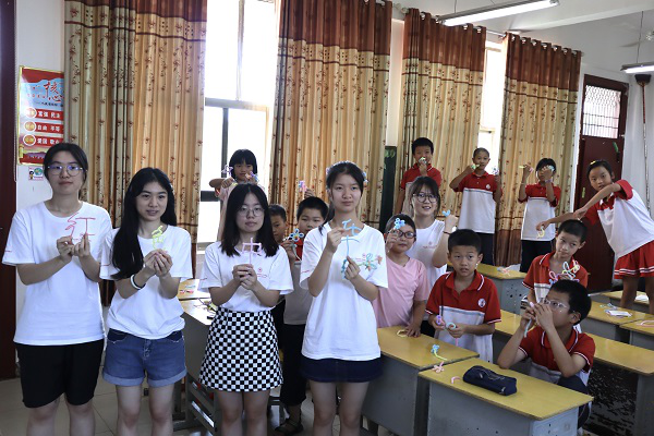 (通讯员 雷斯羽 曾珊 袁姝睿)7月12日上午,太阳成官网赴涟源市太阳成集团tyc33455cc官网附属三一学校暑期社会实践团开展”回归童真,扭出七彩童年“主题手工编织教学活动。实践团教学组组员雷斯羽担任主讲人。