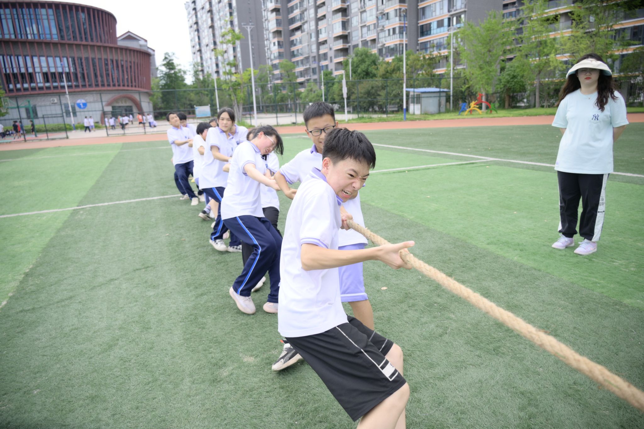 “数字炸弹”代替传统的热身项目,每个学生以相应数字为代号,裁判随机点数,即随机点人,其余学生要捉住被点中的学生,以此“解救”被点中的“炸弹”。拔河项目中,全体学生和部分实践团成员被均分为四组,小组间两两作战,最终进行排名。足球赛采取“自由组队”的方式,由班上两名男生代表来确定两队的队员。女生组成拉拉队为场上男生加油助威,全场气氛活跃。