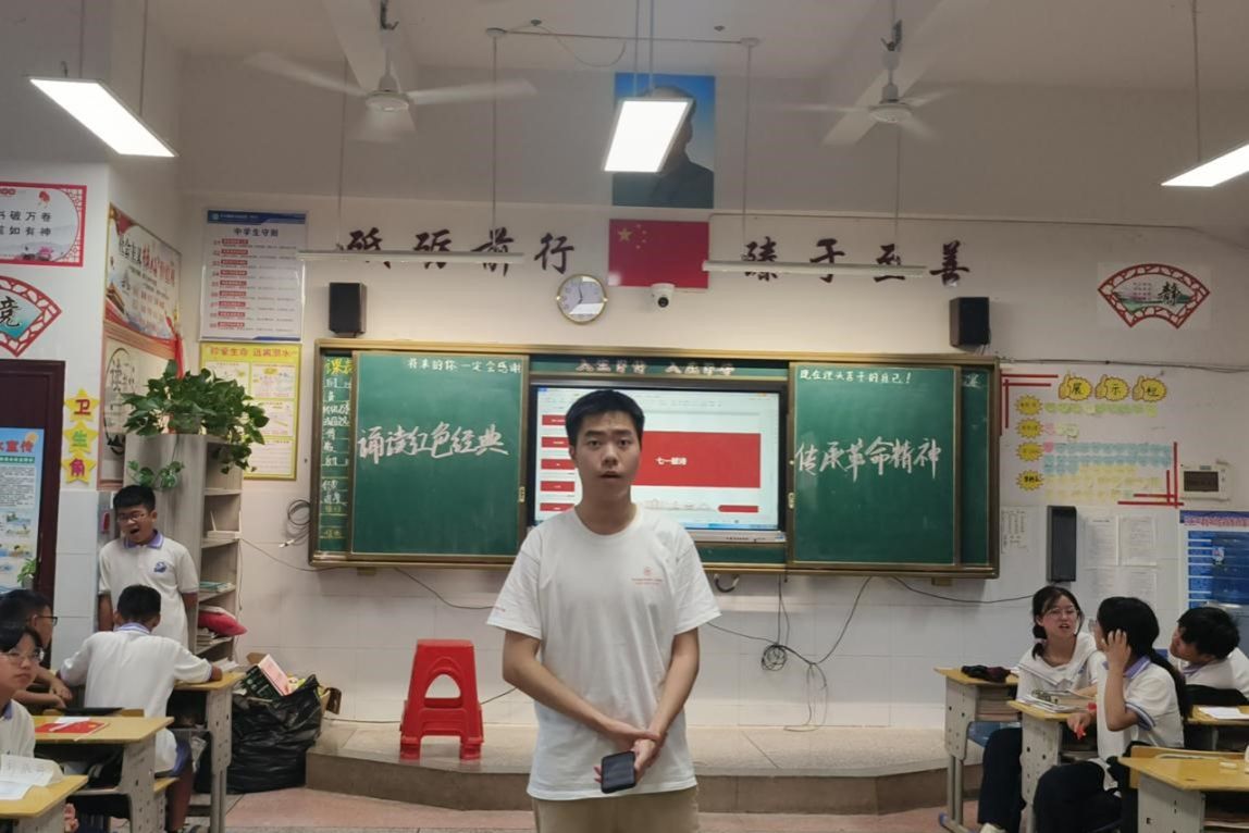在诵读活动结束以后,吴坤鑫根据六组同学的表现,对此次活动做出了总结,讲到举办该活动的目的不光是在于提升学生的朗诵水平,更重要的是锻炼学生的团队合作意识,在集体朗诵中,这一品质显得尤为重要。全体同学自7月9日起进行准备工作,经过充分的排练,此次活动最终圆满完成,展现了朝气蓬勃的青年面貌,通过诵读经典,学生进一步学习了党的历史,在他们的心中种下红色火种。