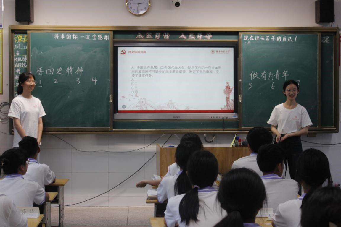 随后,向思润组织同学们开展党史知识抢答竞赛,以小组积分制的方式大幅调动了同学们的积极性,提升了参与度。有学生在回答抗美援朝的题目时,分享了自己太爷爷当年参加抗战的故事,并表明自己也要延续这份革命的火种。