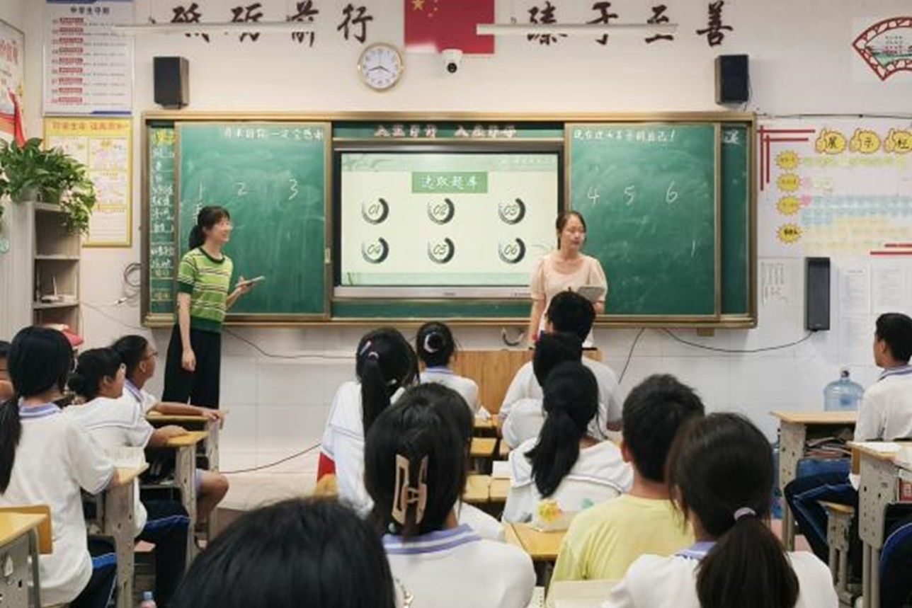 钟澳蔺讲解活动规则。此次大会由“大浪淘沙”、“才思敏捷”和“飞花传令”三个环节组成,所选诗词为学生小学、初中课本中已学的诗词。为调动学生答题的积极性,活动以小组计分的形式开展,全班同学被分为六个小组,与六组题目相匹配,由小组抽签确定题目组号。