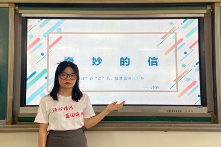 沙颖简要介绍了书信的实用意义,激发学生对传统通讯方式的兴趣度,以引导学生体验书信中的真情实感。她结合传统书信格式,就如何写好书信进行讲解。学生热烈回应,主动举手上台标写书信格式,沙颖对其进行修改与点评。在学生自行书写环节,主讲人走下讲台对各位学生进行针对性指导,细致地指出其书信内容上的可改进之处。