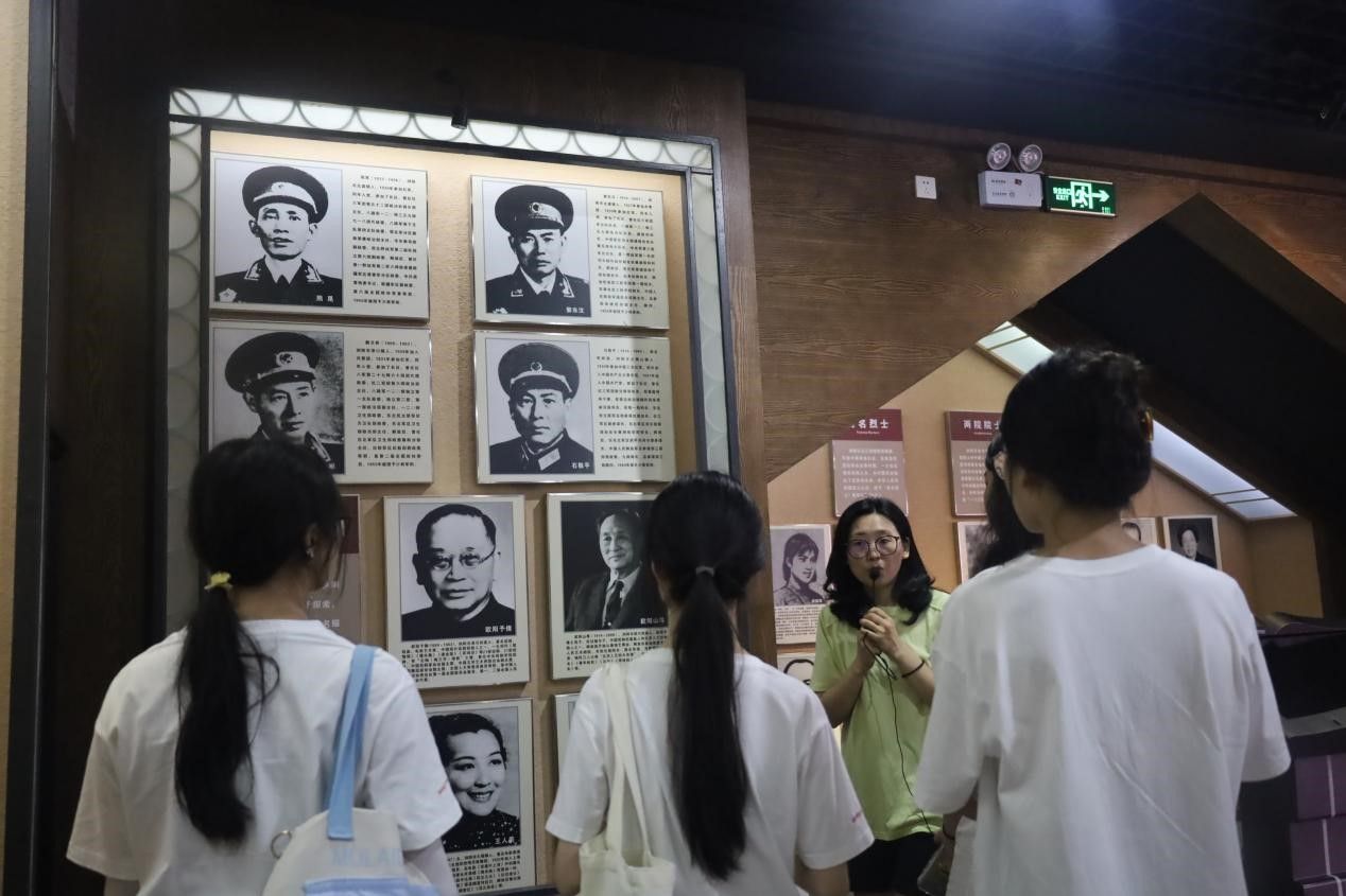 在浏阳市档案馆内,讲解员为调研团系统介绍了浏阳市近代革命中的先驱人物,“我们浏阳没别的,就是将军多。”讲解员称道。在众多英雄丰碑中,被誉为“新中国第一位女将军”的李贞与“自创游击术”的潘心源引人驻足,她们对革命事业的矢志不渝、对理想信念的不懈追求深深触动了调研团成员。随后成员们通过相关史料记录深入学习了先烈的英雄事迹。