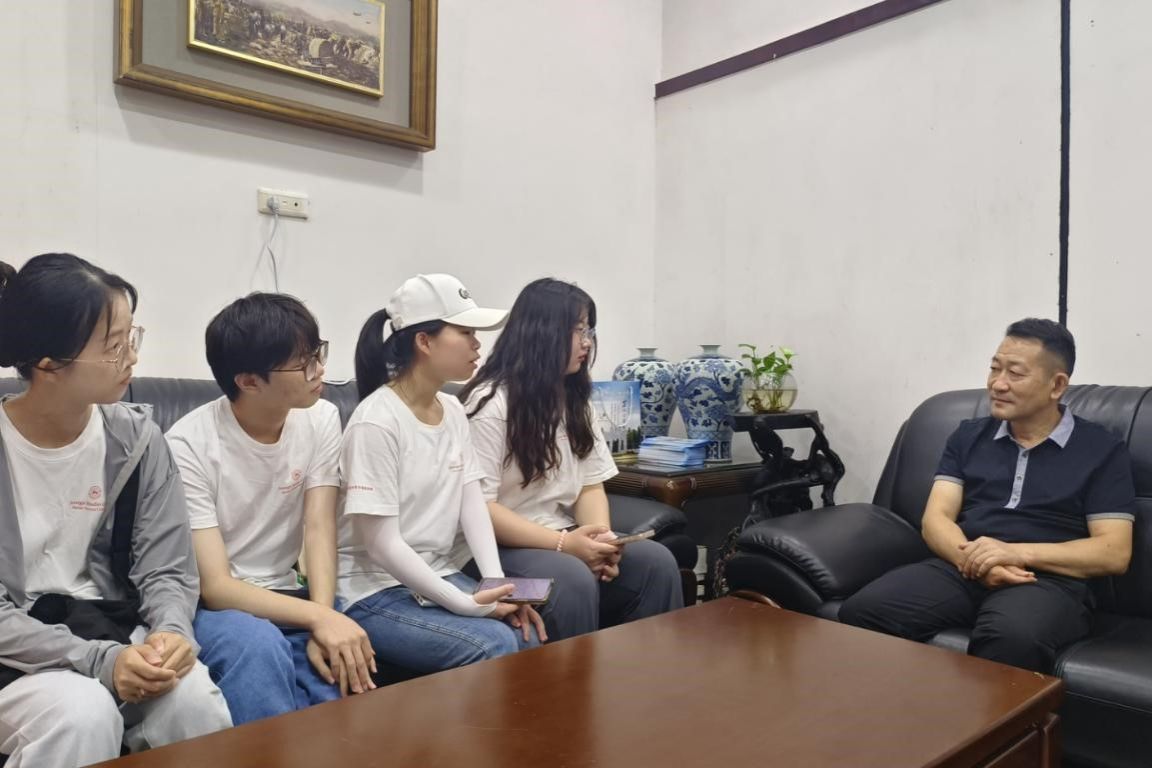 吴建宏热情的接待了实践团成员,采访过程中由调研组组长罗粤进行提问,队长于方元进行内容记录。吴建宏就场馆经营展开讲述,他提到,自2008年以后受降纪念馆便取消了门票收费制度,改为免费参观,这一措施提升了前来参观的游客人数,但同时人数的增多以及场馆收入的减少会使得管理成本大幅度增长,但只要能进一步传承与发扬抗战精神,让更多的人了解这一历史,这仍然是值得的举措。随后,针对纪念馆的相关宣传工作,吴建宏提到,场馆的知名度还有待进一步提高,特别是对于年轻人群体,例如将这一段光辉历程编入义务教育课本,增加民族文化自豪感,需要纪念馆与学校、政府等相关部门多方发力。