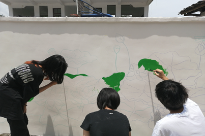 在4天时间里,实践团成员设计并绘制出墙绘图案,从打边框、勾画主体、填色到后期修正,每一个图案精雕细琢、每一个步骤精益求精,成员们用画笔和颜料在墙面构思创作,将艺术融入乡村,绘就的一幅幅精美画作,不仅成为乡村一道美丽的风景,更充分展现了社会主义新农村的风土人情。