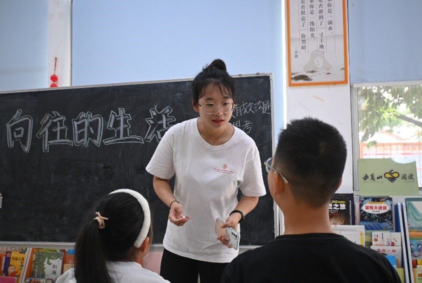 宣讲会最后,实践团成员申蔚颖组织学生从家庭、学校、社会三个方面思考“我向往的生活”,鼓励每位同学说出自己向往的生活,共同分享交流,展望美好的未来。她也启发同学们在追寻“向往的生活”的过程中,保持善良的初心。