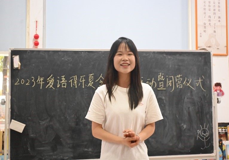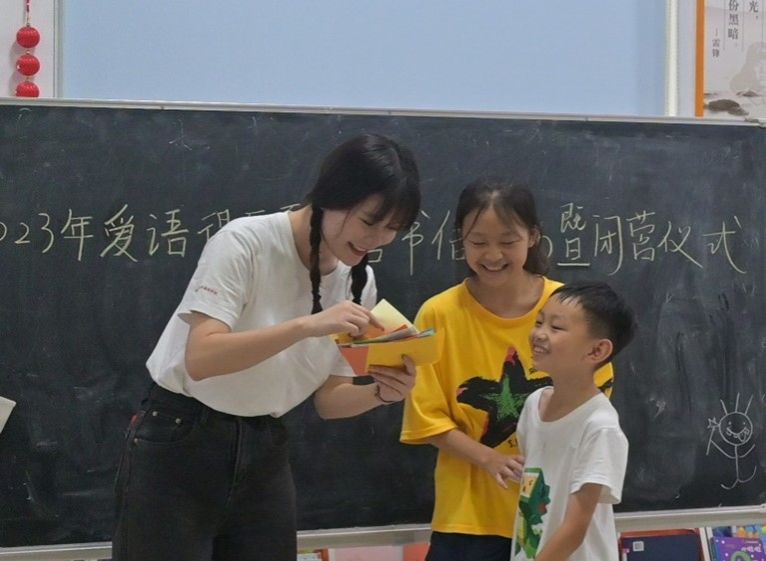 此次活动由书信活动、实践团成员发言和发放奖品三部分组成。在书信活动中,小朋友在彩纸上或写下在夏令营的收获,或写下对实践团成员想说的话,又或是用画来表达自己的想法,书写完毕后,实践团成员鼓励同学们上台分享自己的收获,表达自己的想法。随后,实践团队长和各组组长先后分享她们在这两周内的收获。实践团成员们回忆起与小朋友们相处的点点滴滴,并为他们送上真挚的祝福。实践团队长申蔚颖希望小朋友们在未来能茁壮成长,副队长伍思欣、王文静祝福小朋友快乐成长,在以后成为“自己喜欢的大人”。在仪式的尾声,实践团成员向每一位参加夏令营的同学们发放奖品,和小朋友们一一道别。