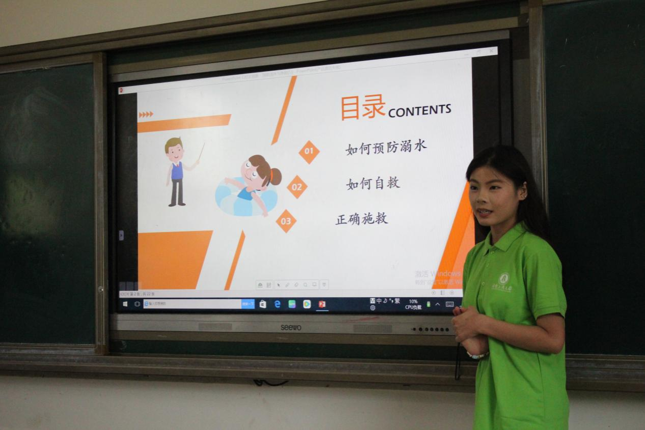 黄忆萱从如何预防溺水、溺水时如何自救和溺水如何施救三方面展开讲解,科普溺水自救常识,同学们踊跃举手发言。随后,杨婷利用带来的人体模型作为教具,将讲解与演示相结合,展示溺水急救流程。同学们积极参与互动,上台展示,将所学运用于实际。课后,同学们表示认识到了防溺水的重要性,对溺水急救有了更全面的理解。