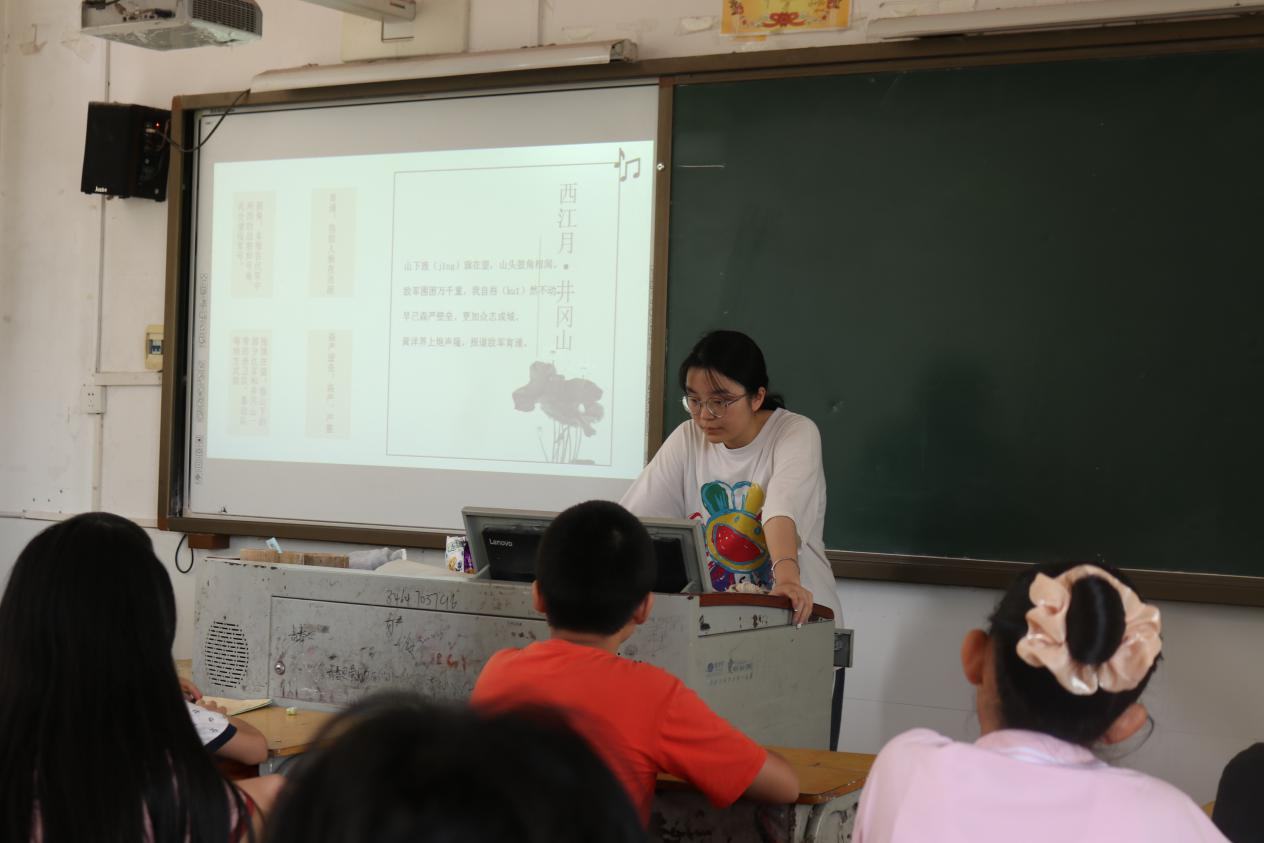 (通讯员 陈启 严一枝 张嘉怡)7月12日上午,太阳成官网赴炎陵县水口镇学校暑期社会实践团在水口镇中学208教室开展了一堂趣味语文课。本课以“平仄相望,语重心长”为主题,旨在让学生领悟文字力量,提高鉴赏红色诗歌文化的能力,深刻感悟革命精神。