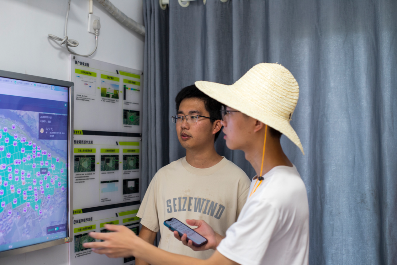 在智慧农业监控站中,李哲理向实践队成员展示了智慧农田的基础设施,包含如田间摄像头、田间气象站、灌溉阀、农田水位仪、田间智能灌溉等智能设备,实时反映农田具体情况,向农民们提供强大的数据支撑。其中的智能灌溉功能为农户提供了便利,需要灌溉的农户只需点击网站上的按键,就能实现坐在家中远程灌溉。李哲理表示,虽然近日湖南暴雨天气频发,但得益于田间水位仪的实时智能检测功能,示范点的种植物受到的影响较小。通过农业物联网技术,可以实现农产品质量追溯和农业生态监测,提高农产品品质和市场竞争力。