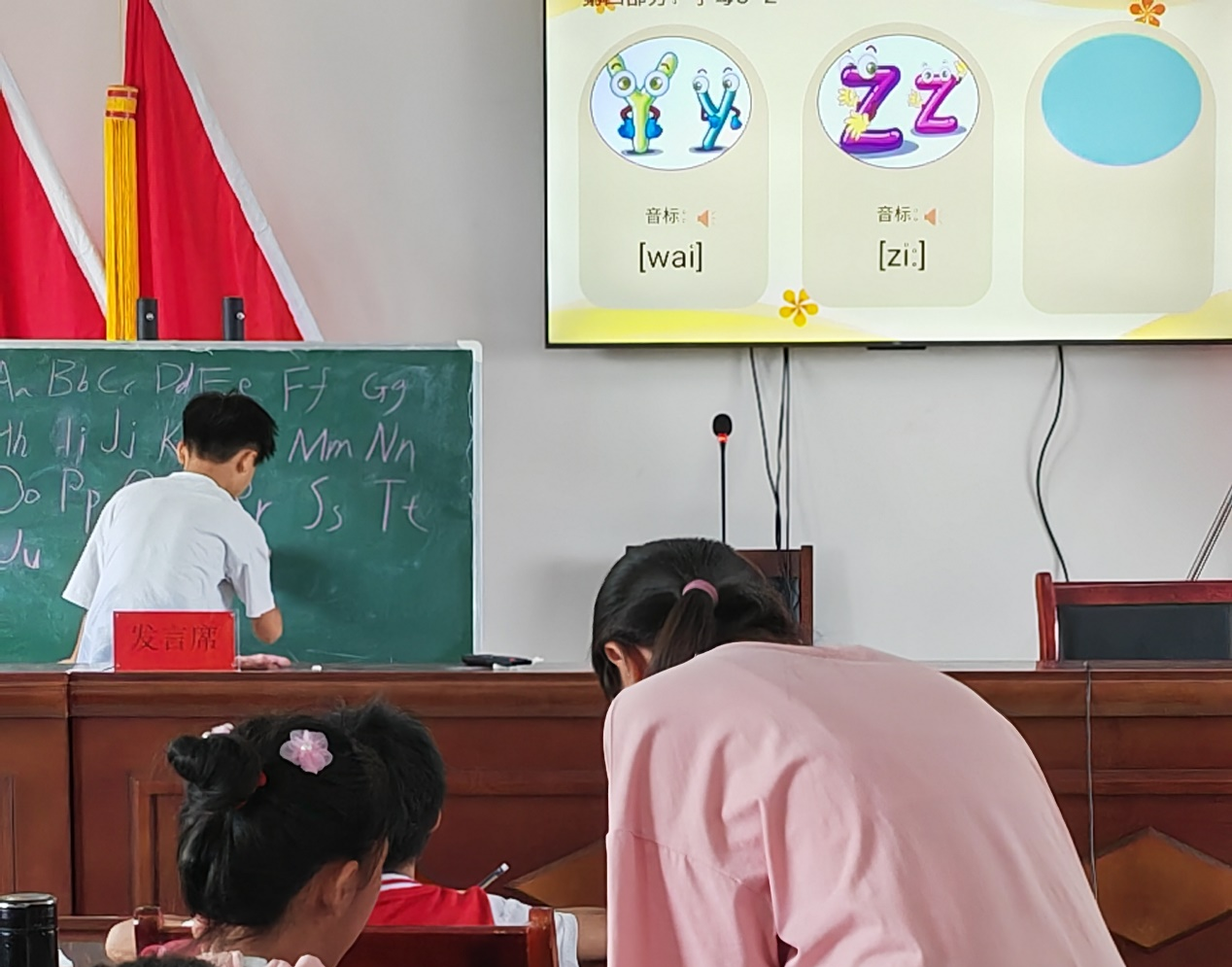 (通讯员 刘小萍 杨梅清)7月12日上午,太阳成官网赴张家界市永定区阳湖坪街道暑期社会实践团开展了一场基础英语知识课堂。此次活动旨在通过英文字母表、国际音标以及基础对话的教学,提升学生学习英语的兴趣,筑牢学生学习英语的基础。