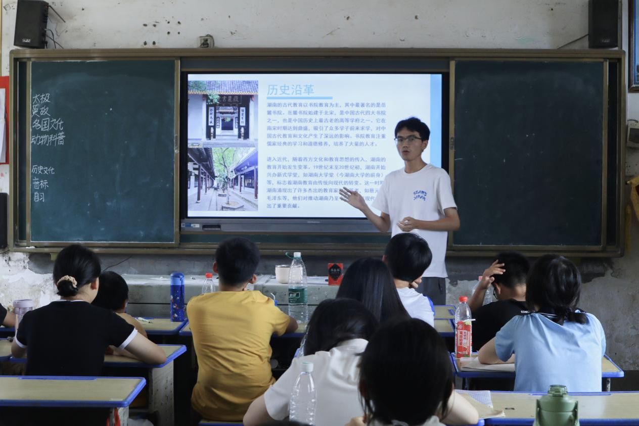 一周的时间里,实践团成员为大安学子们带来了别开生面的湖湘历史文化特色课程,涵盖湖湘地区的历史脉络、文化传统、名人轶事与民俗风情等。在知识火炬的传递中,激发学生们对于家乡文化的热爱与自豪。